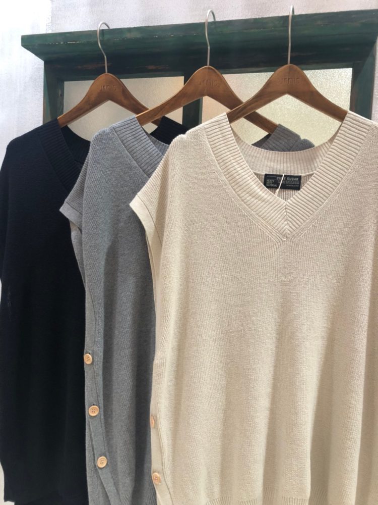 サイドスリットで抜け感があり、ボタンも可愛い1枚♪