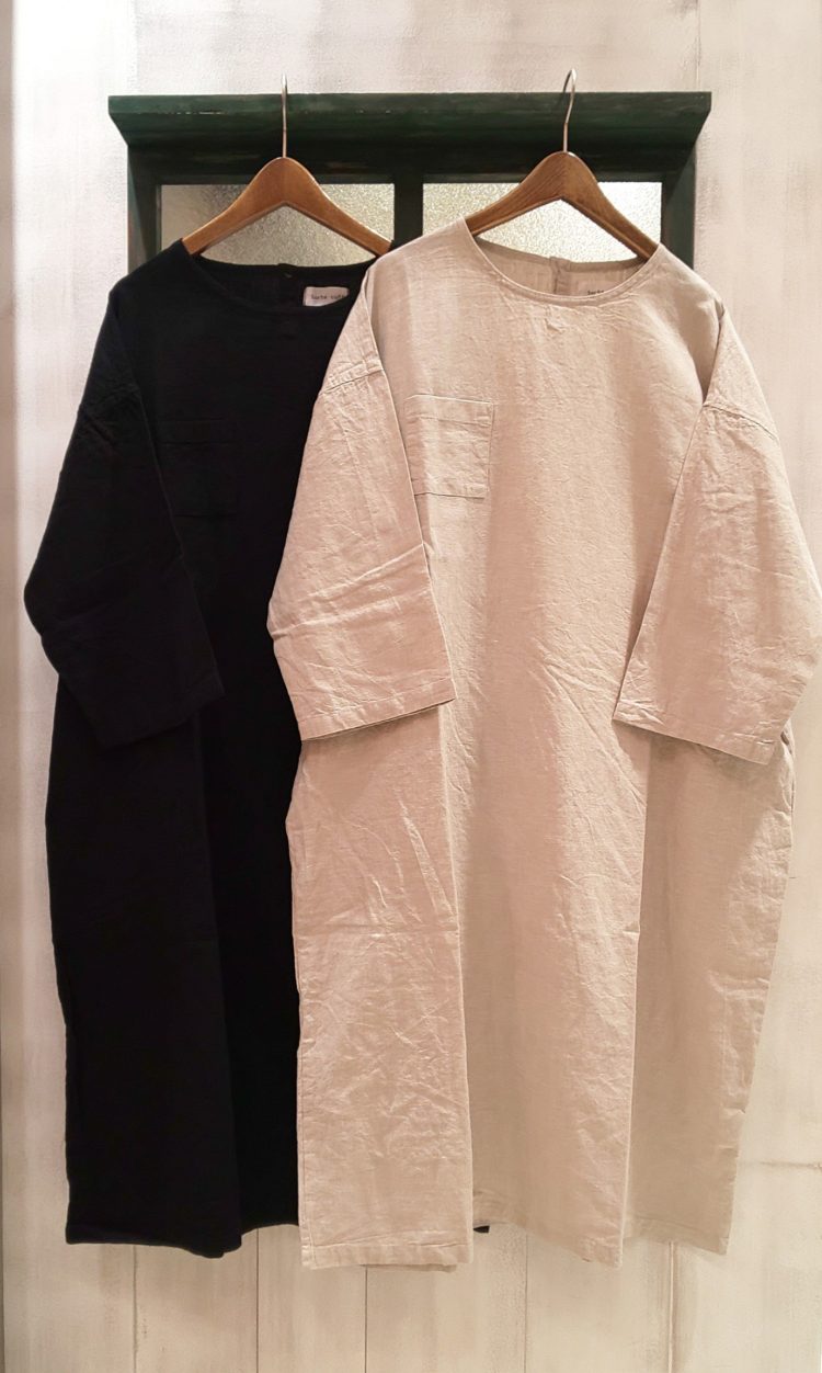 前回の田中さんのブログでもご紹介しましたSorte cuff(ソルテカフ)から綿麻ワンピースを。