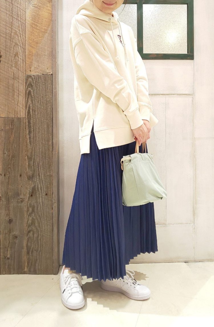 アイボリー×ブルーにグリーンのバッグで爽やかさを演出してみました。
