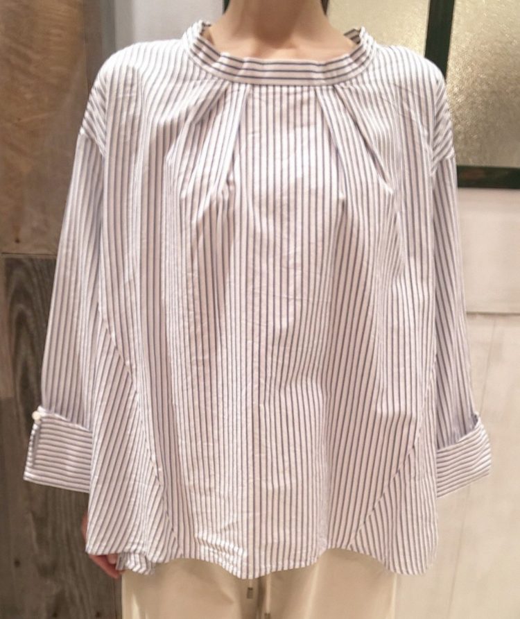 見頃や袖だけでなく首元も余裕のある作りのブラウス。