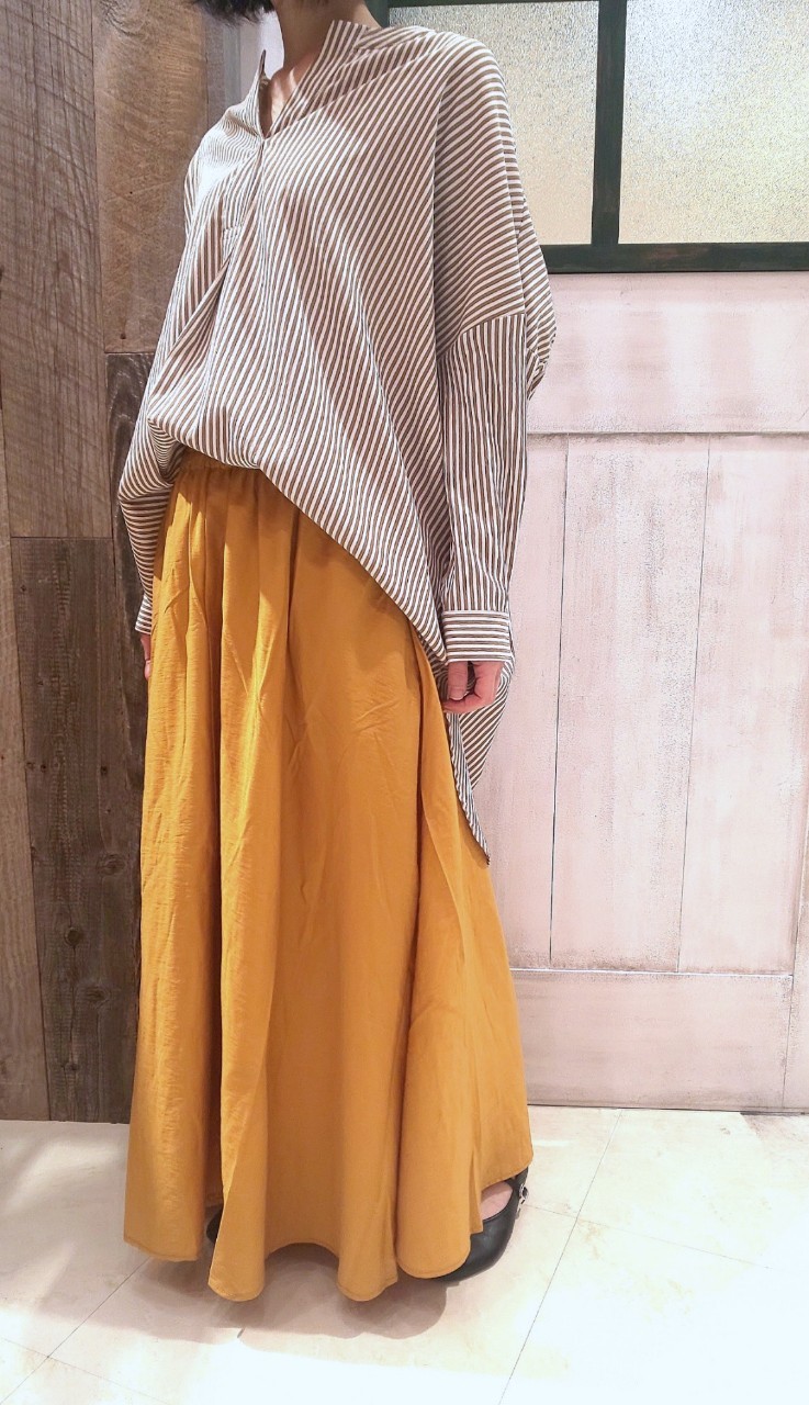 薄手で柔らかく、少し光沢がある使い勝手の良さそうな生地のスカート。