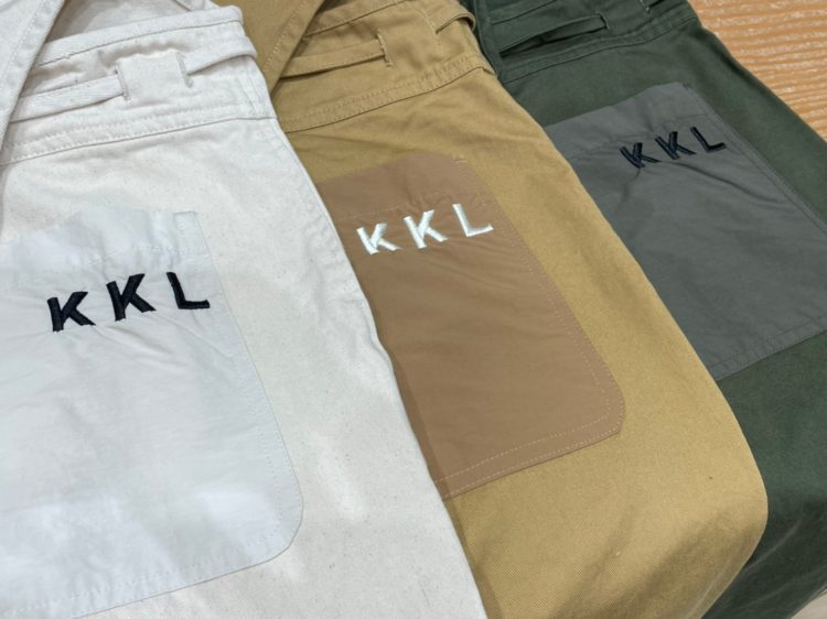お尻のポケットは異素材で、ロゴ刺繍がアクセント♪
