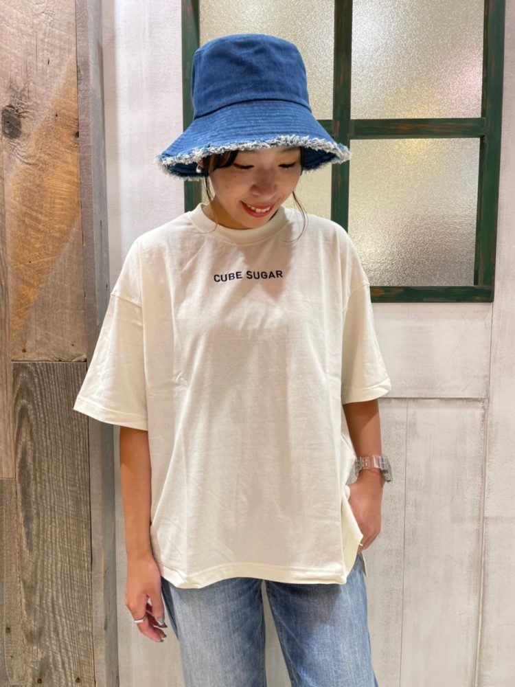 胸元に、CUBE SUGARのロゴが入ったシンプルなTシャツ。