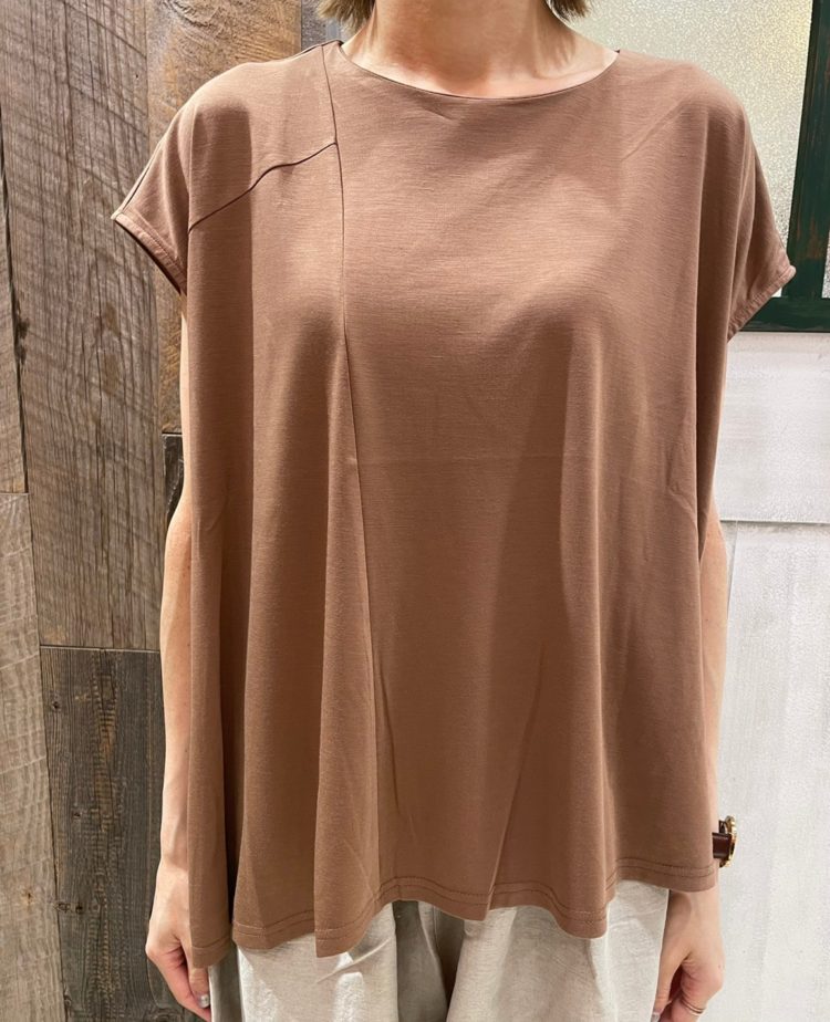 片側だけ切り替えの入ったアシンメトリーデザイン。