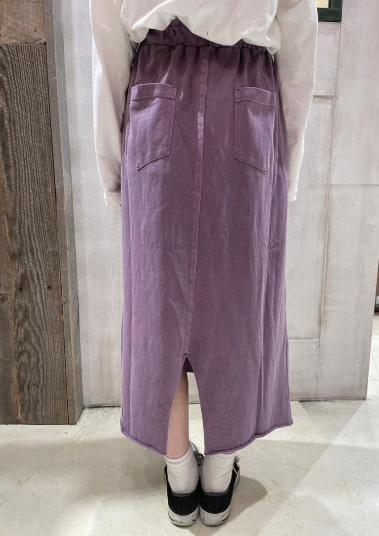 ややタイトなシルエットですが、裾は切りっぱなしで、スリットも入っているので足さばきも良いです。