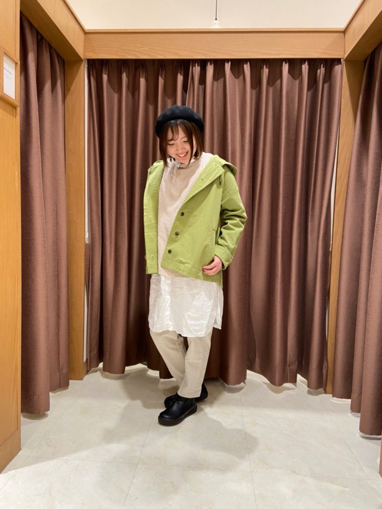 グリーンのアウターを使ったナチュラル×カジュアルコーデです!