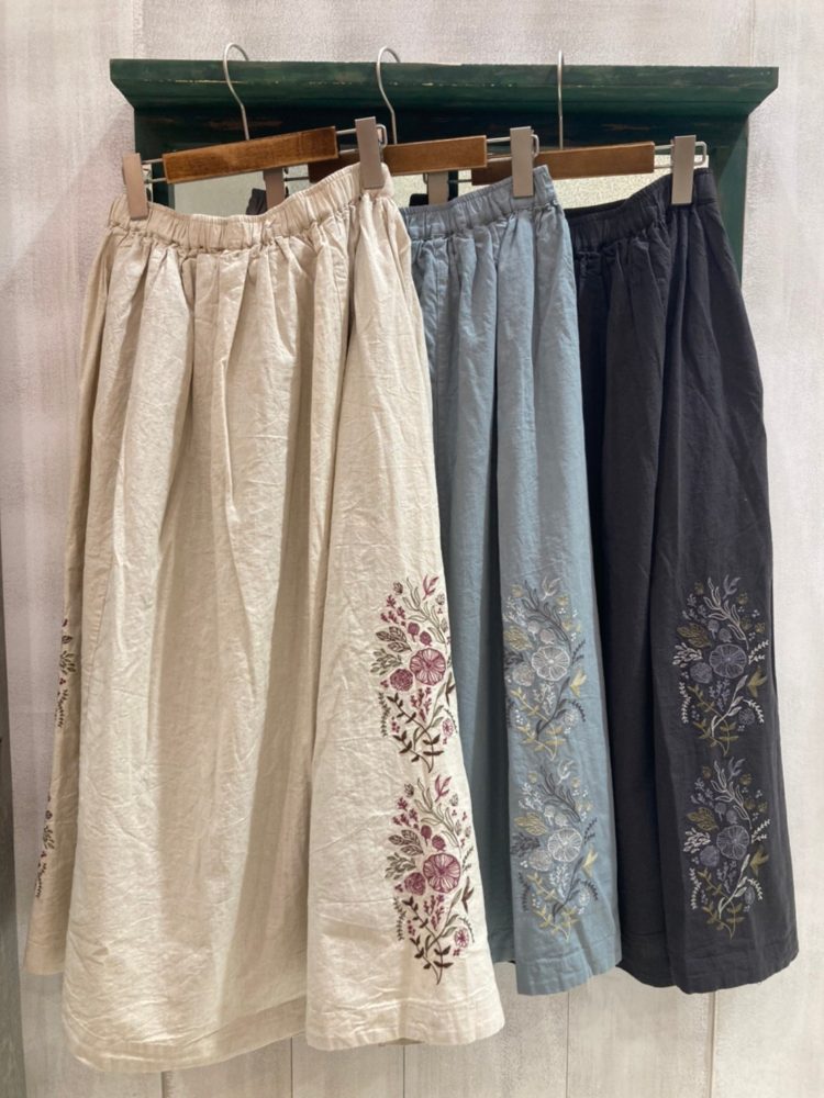 《綿麻平織モチーフ刺繍後ポケットSK》
