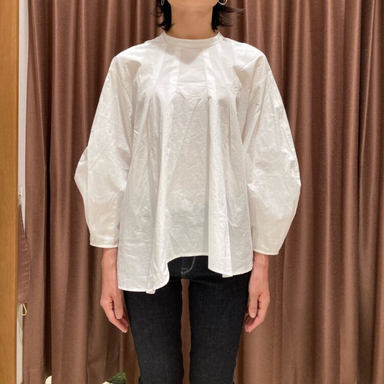 Aライン、ぽわんとした袖が女性らしい形のブラウス。