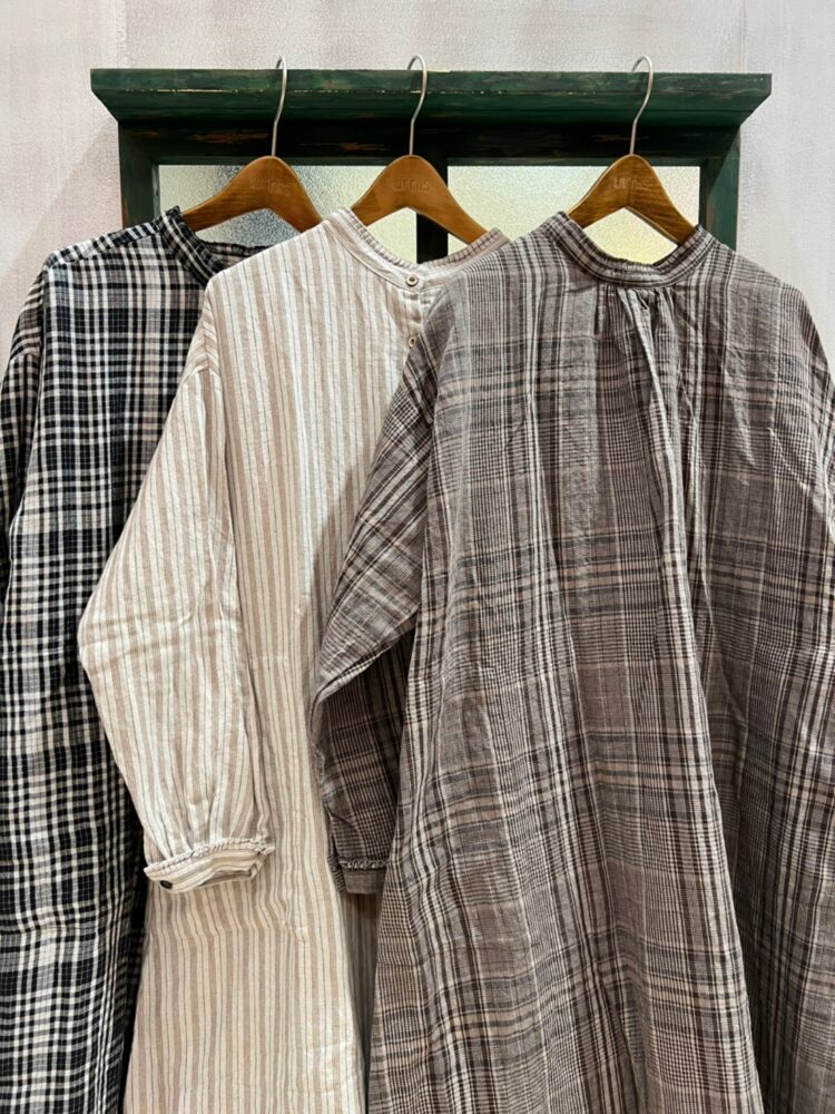 前後で着られるのでボタンを前に着ていただけます!こちら側は胸元にタックがないのでまた違った印象に。