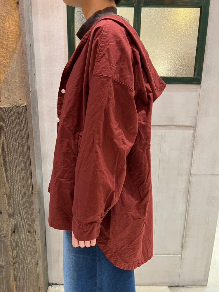 軽いシャツ生地ですが、フードがついていたり、前後差があったりとアウターのように羽織れるので、今の時期にぴったり!