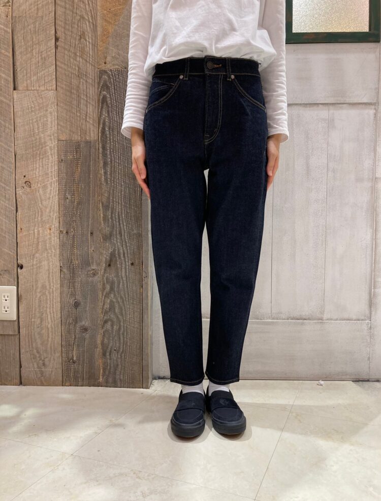 流行り廃りのないテーパードシルエットのデニム。