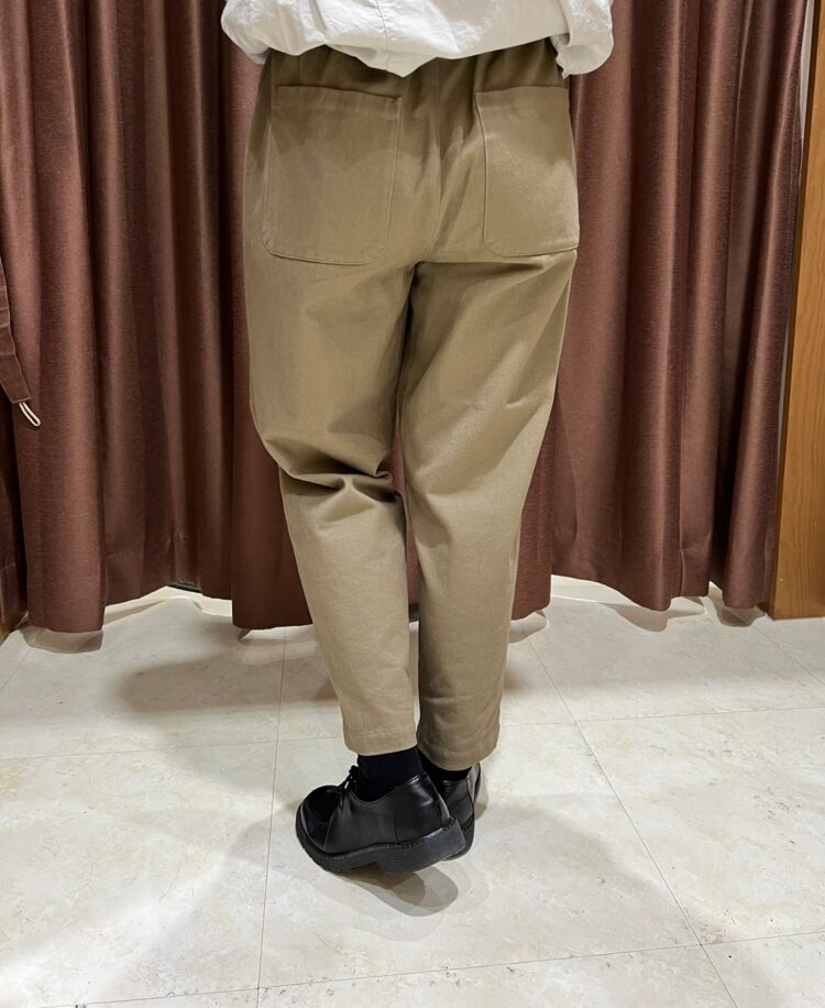 桃の産毛のような手触りの感触が特徴的な加工が施されたパンツ。