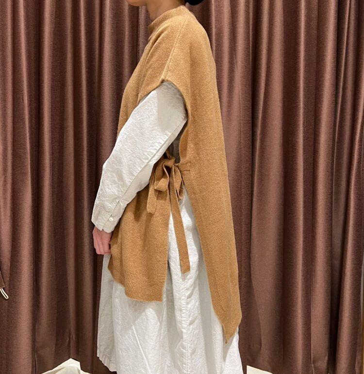 先ほどのニットベストよりざっくりと編まれているので、ふっくら暖かいのが特徴。