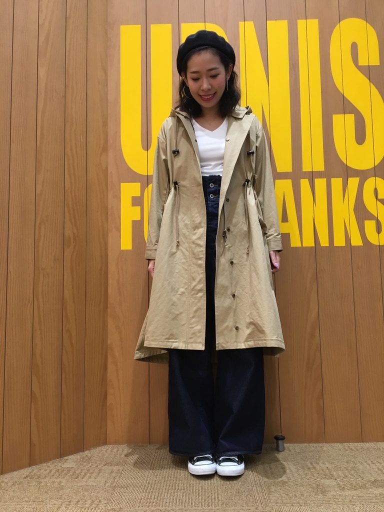 ベージュのスプリングコートとデニムの王道「春ファッション」