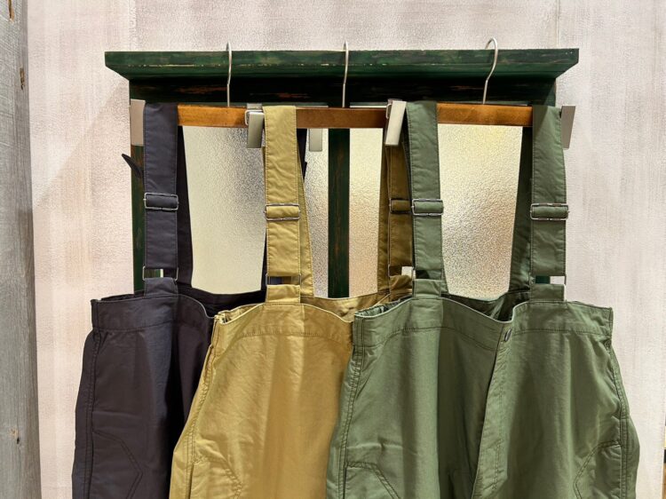 カーゴパンツの防寒・防風用の重ね着パンツとして使われていたオーバーパンツをイメージしたサロペット。