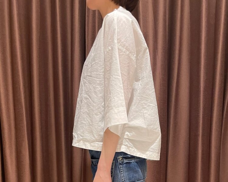 丈が短めなのでワイドパンツやスカート合わせがおすすめ!