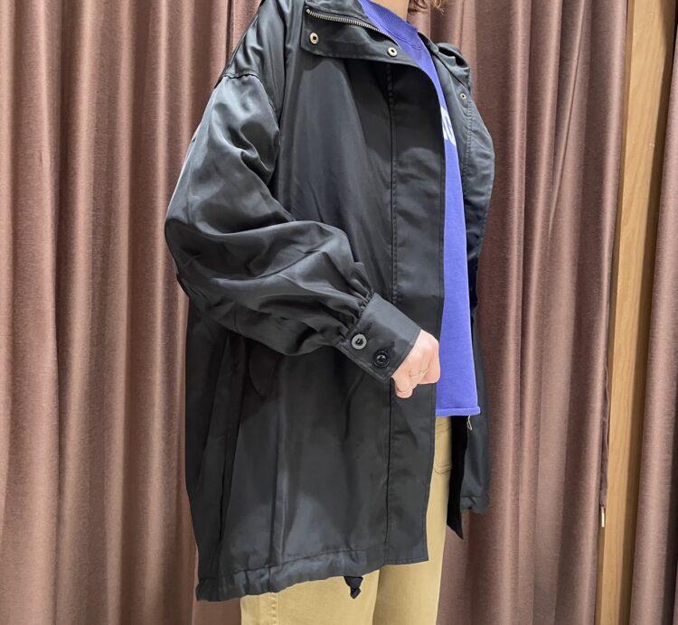 全体的にゆったりしているので厚手のトレーナーやニットの上からでも羽織りやすいです!