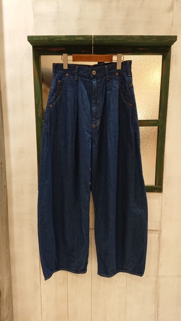 ボリュームのあるシルエットですが、柔らかく薄いデニムなので、軽くて履きやすいです。