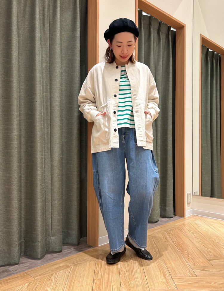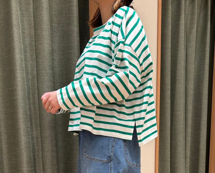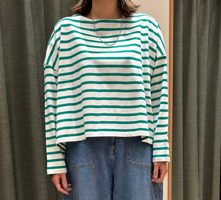 丈は短めなので、ボトムスにインしなくても着て頂けます◎