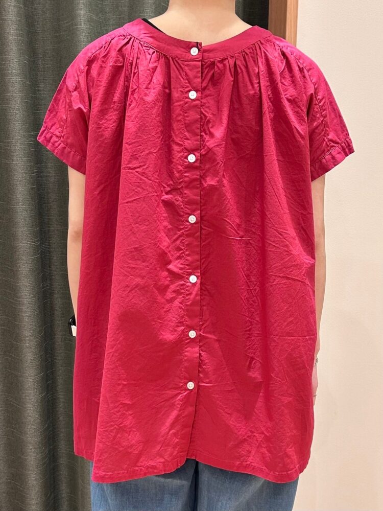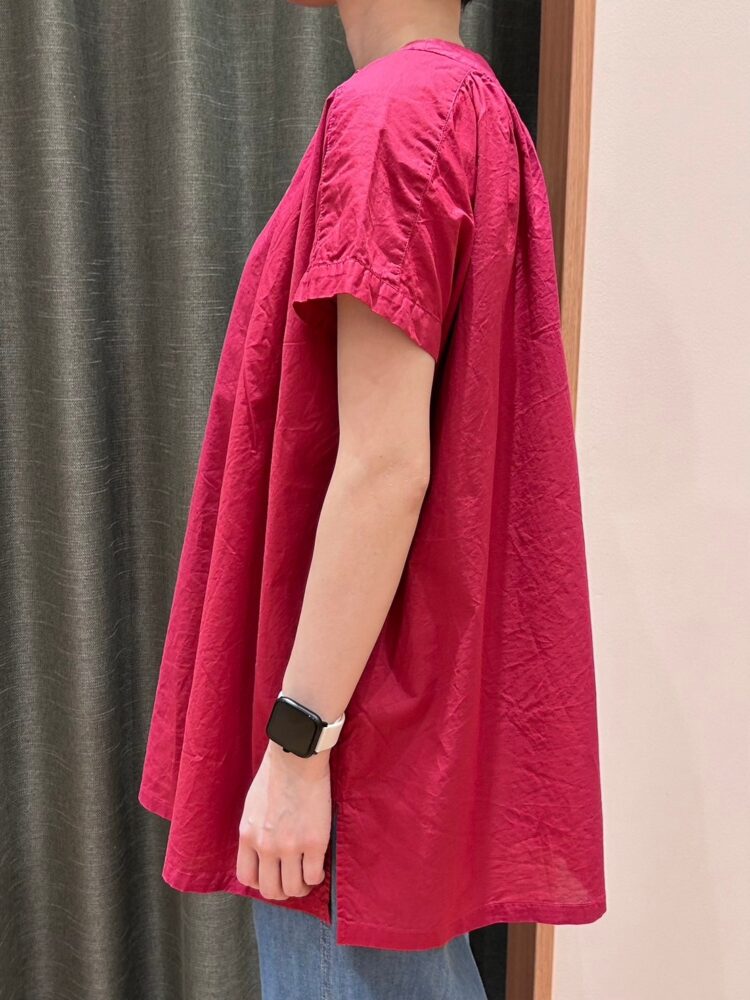 厚みをおさえた軽いコットン仕立てで、風をまとうようにふんわりとした生地のブラウス。