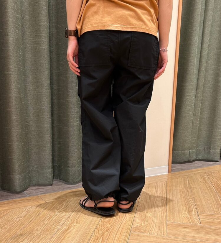 トレンドのカーゴパンツですが、ボリュームを抑えてあるので、挑戦しやすいデザインになっております!