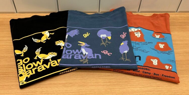 背中にgo slow caravanのイメージグラフィックとコンセプト、袖にはgo slow caravanのラインプリントを入れた人気のプリントTEE。