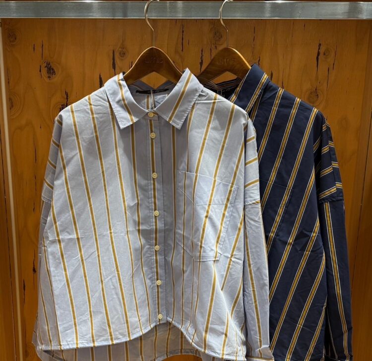 たっぷり分量感のあるワイドシルエットが魅力のストライプシャツ。
