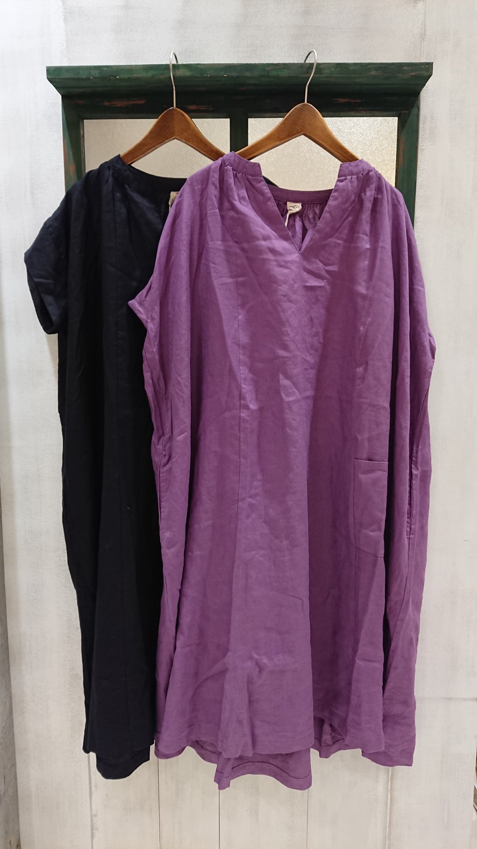 麻100%で涼しく、これからにピッタリのワンピースです。