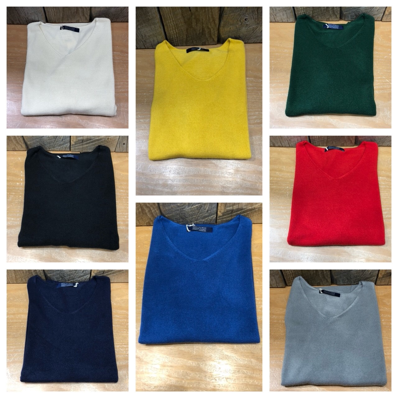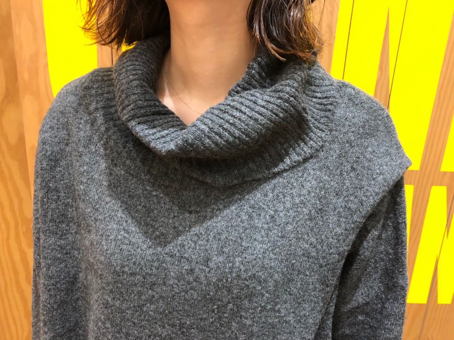 ニットは、Vネックで顔まわりをスッキリ見せてくれます。