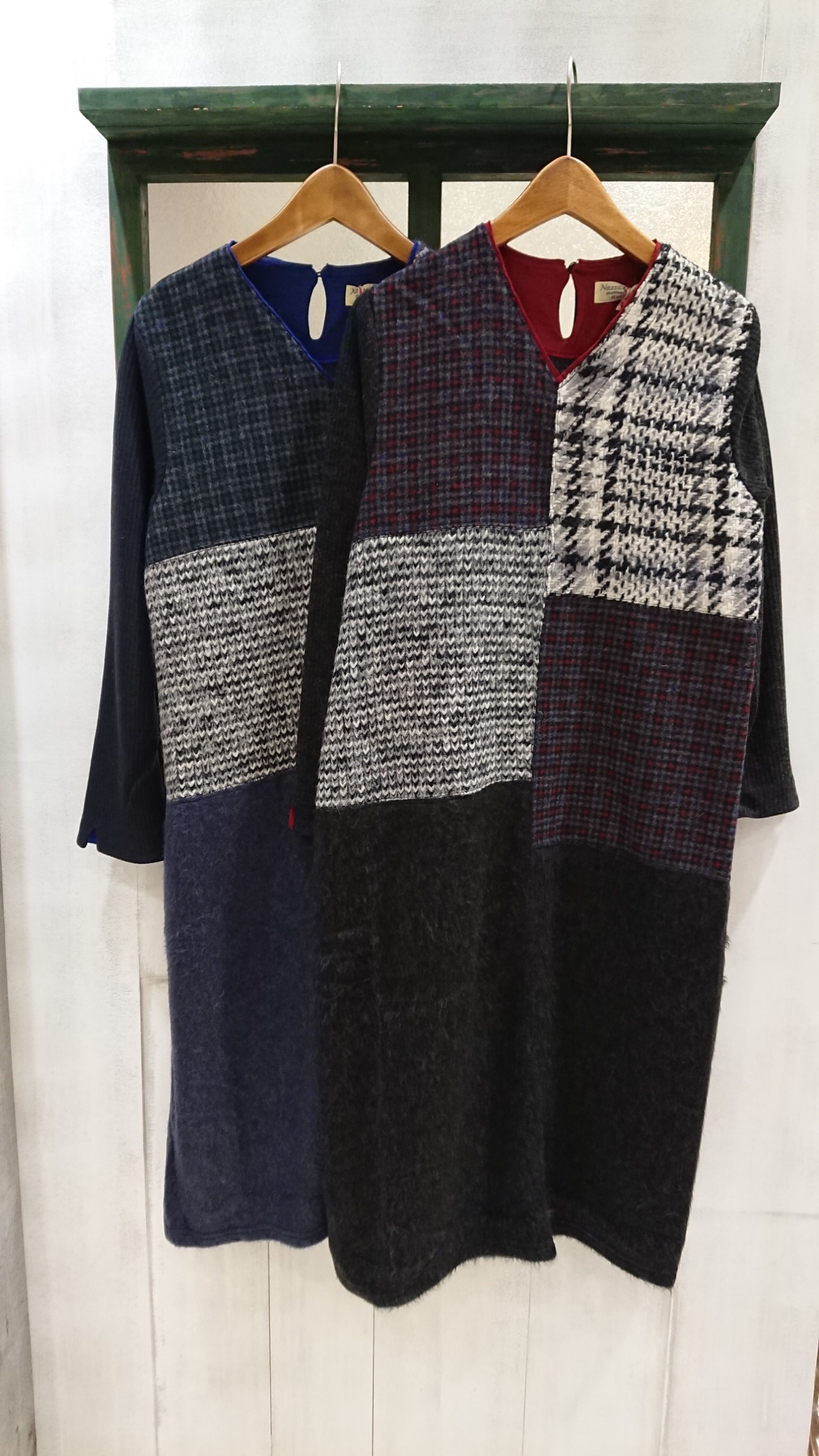 ニットとボーダーの切り替えがポイントのワンピースです!