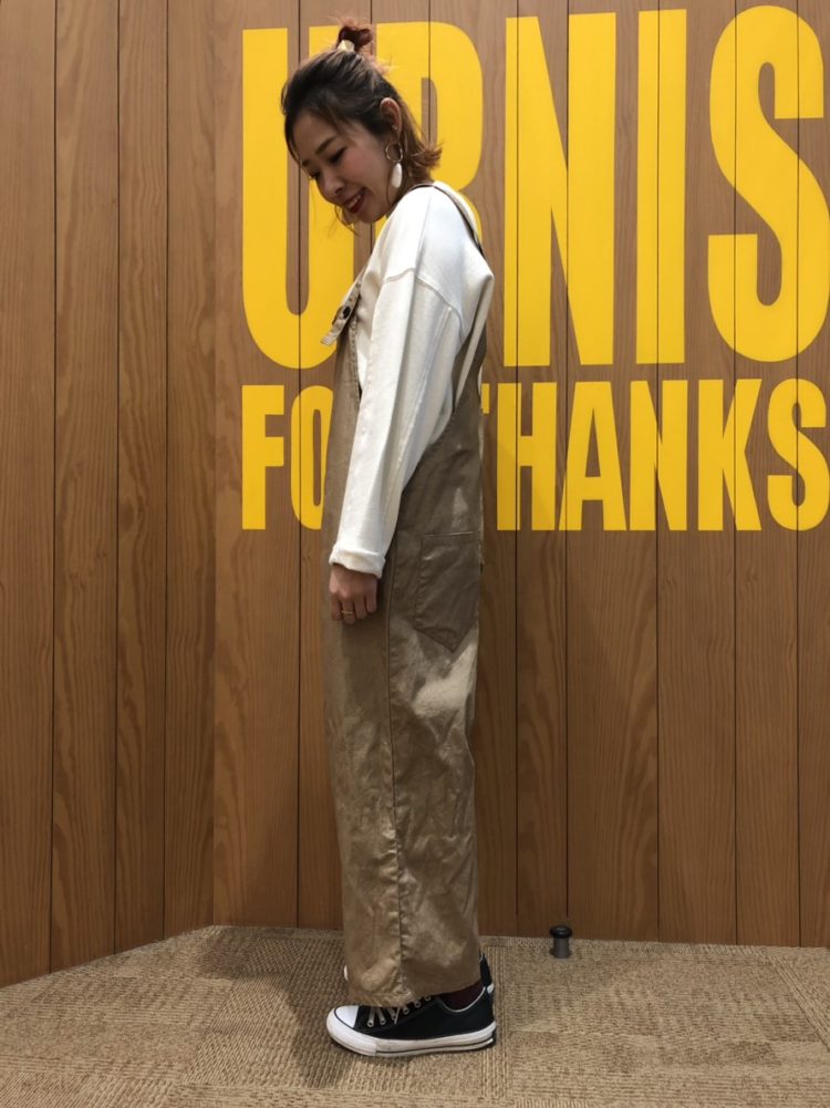 サロペットは、ワイドタイプで、大人っぽいデザインです。
