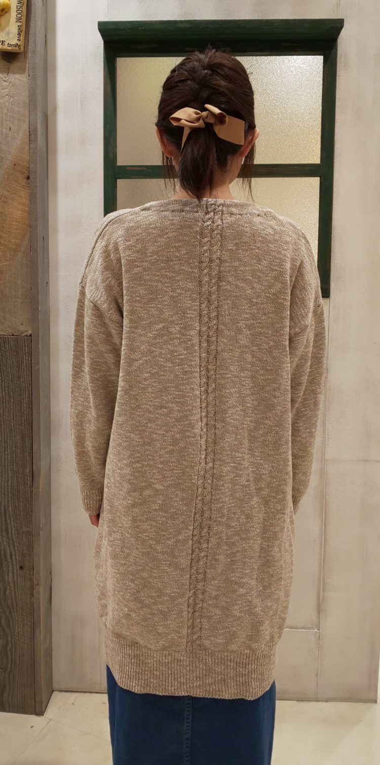 背中ケーブル編ロングカーディガン
