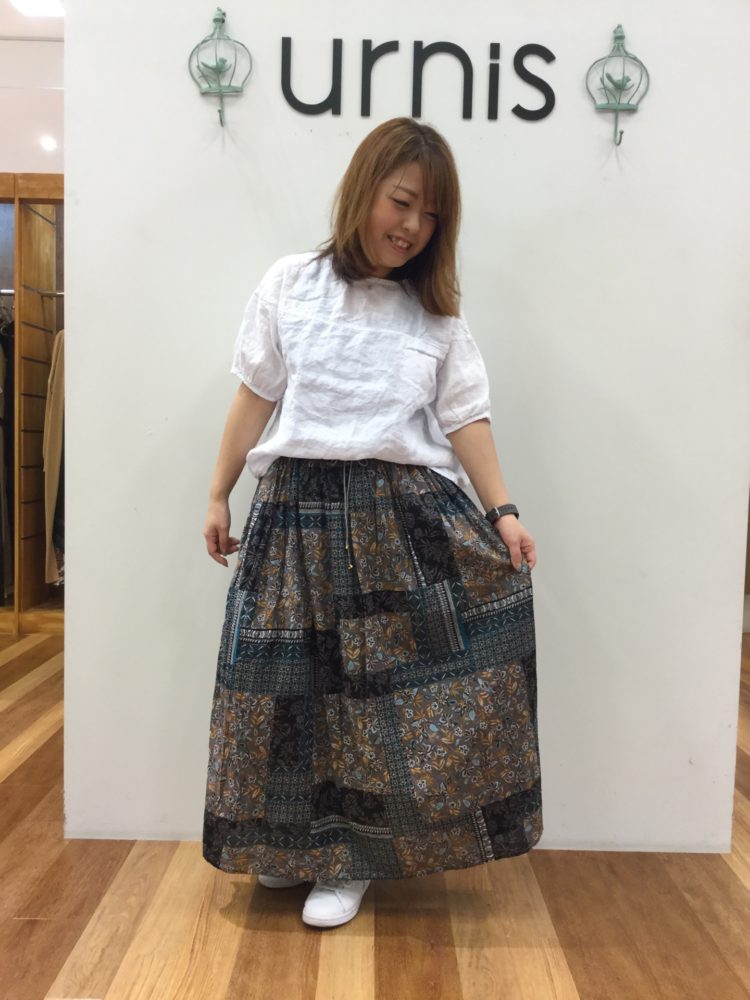 今回は、カリネの柄スカートで大人っぽく少しフェミニンに仕上げてみました!