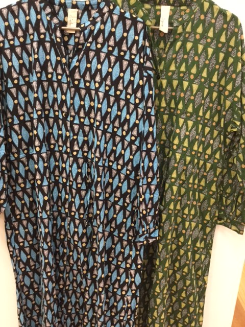 コットンオリエンタル柄Vネックウエスト紐全開ワンピース長袖