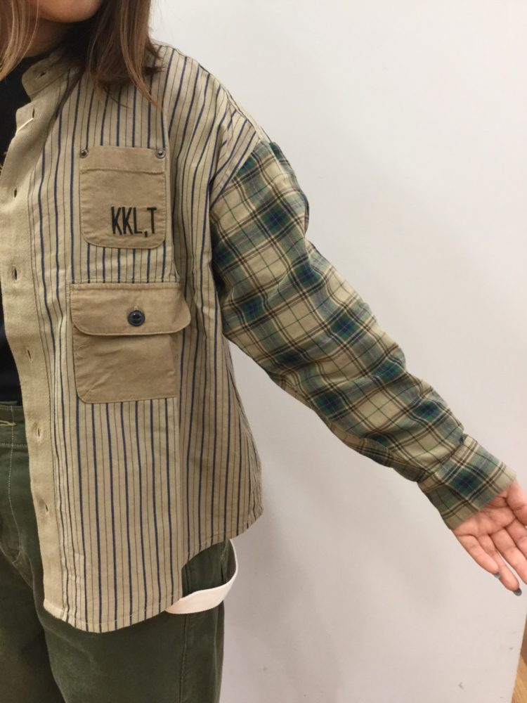 長袖別注ポケットスタンドシャツ