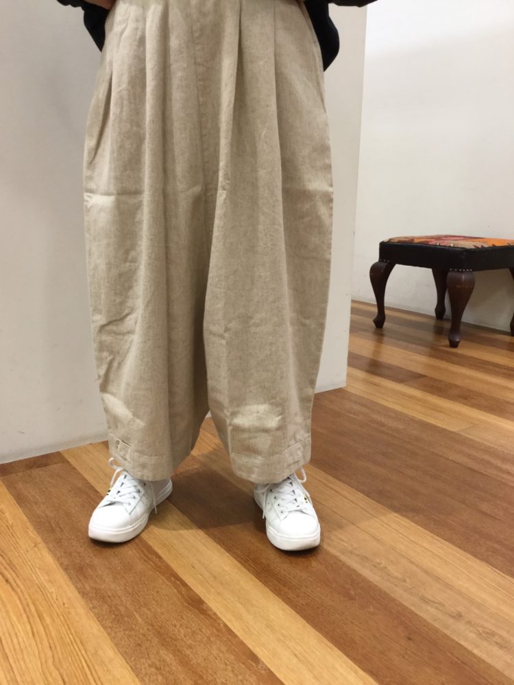 パンツは綿麻素材でたっぷりしてるので履き心地バツグンです!