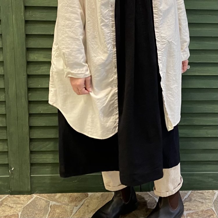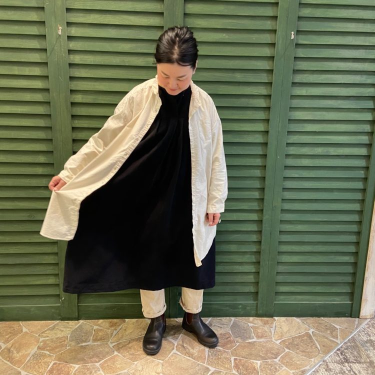 外側に着ているカーキのワンピースもメンズライクな渋いカーキとちょっと甘めなデザインの組み合わせに惚れてしまいました。。。