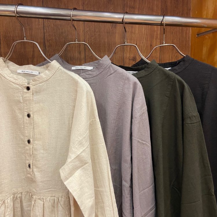 綿麻シャンブレー起毛ヘンリーチュニック長袖