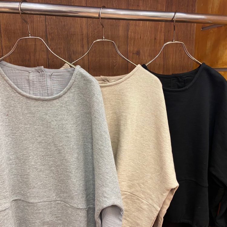 ドルマンスリーブなので、重ね着しても袖がもたつかず、スムーズに袖を通す事が出来ます。
