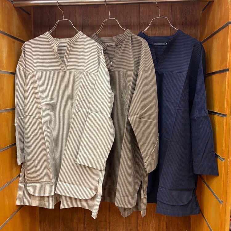 中に着ているチュニックはかなり薄手のシャンブレー素材