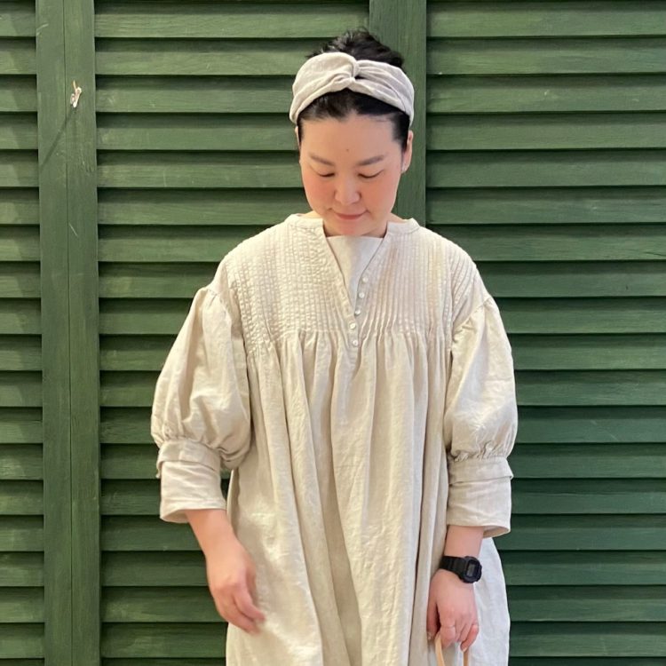 14番手リネンピンタックボリューム袖ワンピ