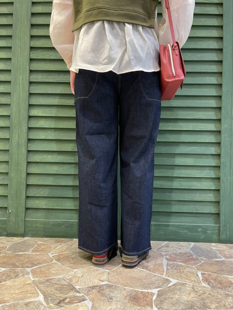 外側からはゴムを使用しているとわからないデザインでなので、丈が短いトップスに合わせたり、ベルトが苦手な方でもチャレンジしやすいです。