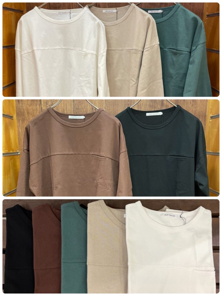 フレンチリネン日本製品染裾ラウンドギャザーTU長袖