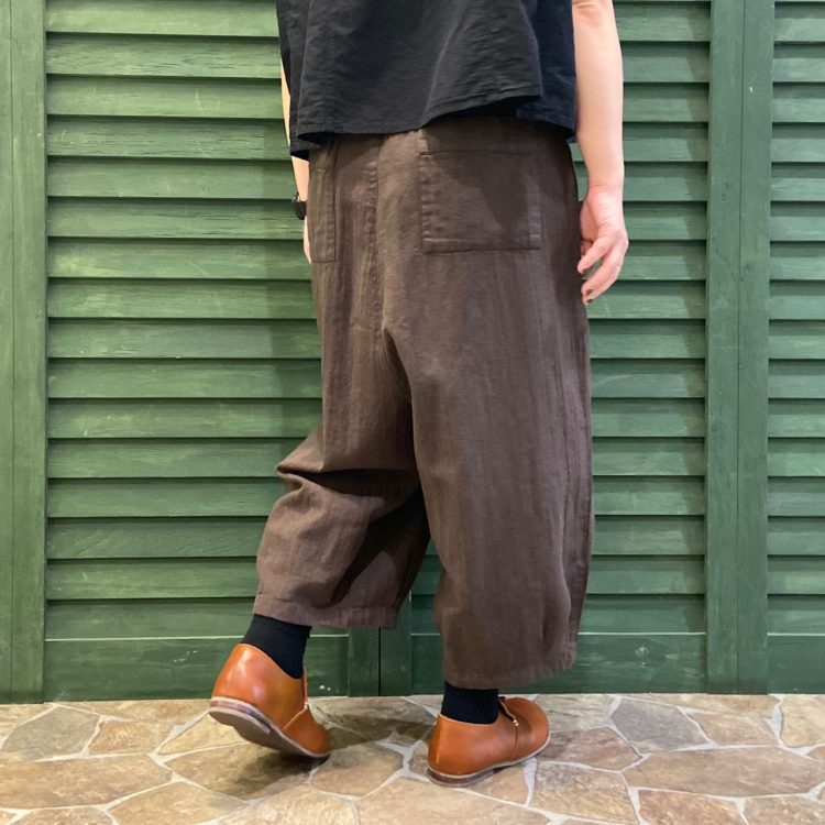 綿麻シャドーストライプ裾タックサルエルパンツ