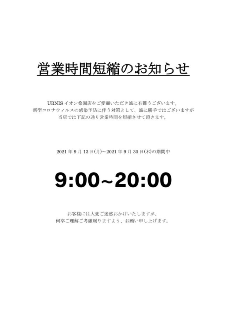 【時短営業のお知らせ】