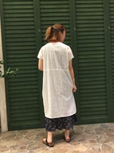 シンプルなアイテムに、花柄のスリットシャツワンピを