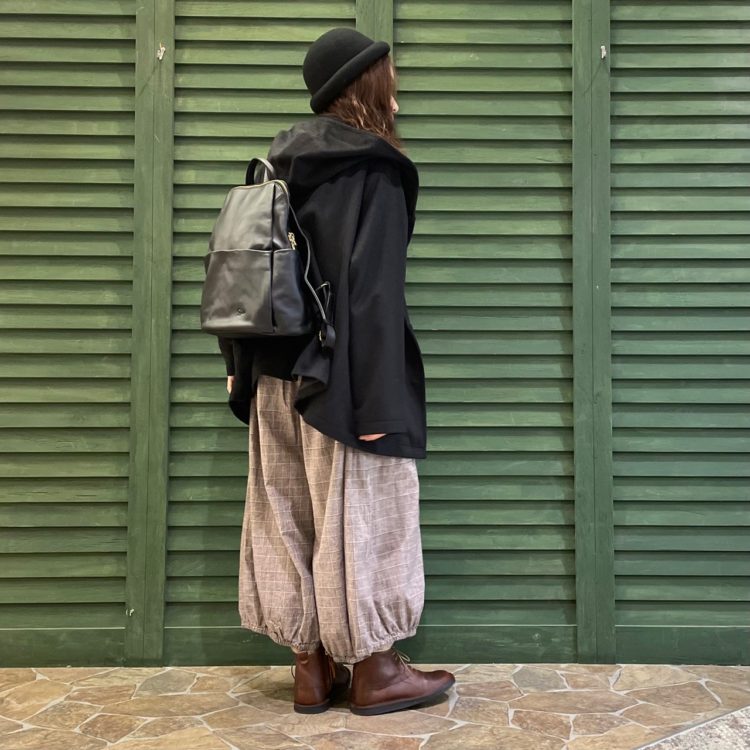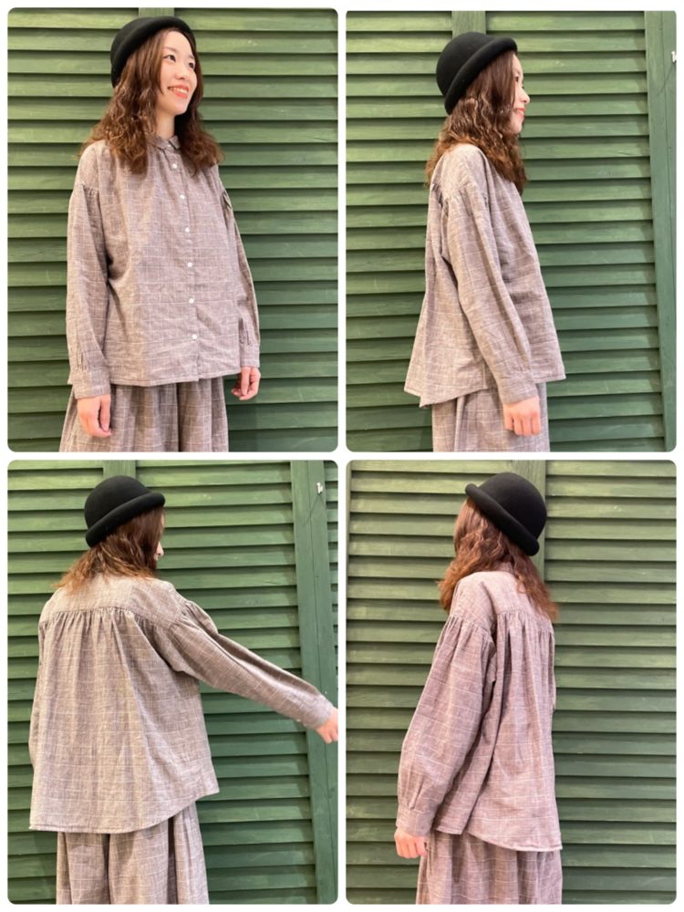 綿麻起毛千鳥グレンCHギャザーボリュームSH長袖