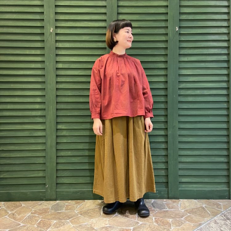 中に着ているのはSUNVALLEYのオックス素材のブラウス