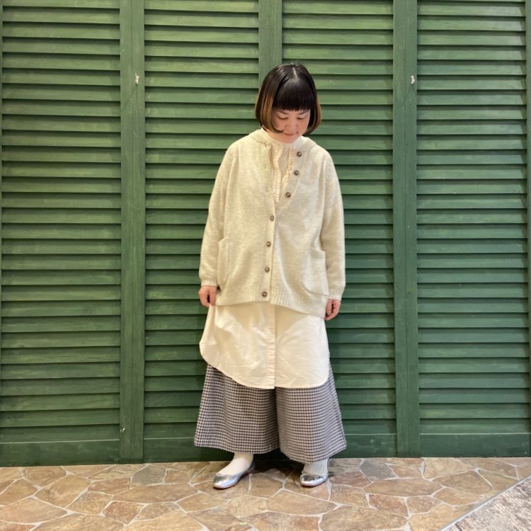 編地切替がとっても可愛いニットはボタンを開けて重ね着を楽しむ事が出来ます▼
