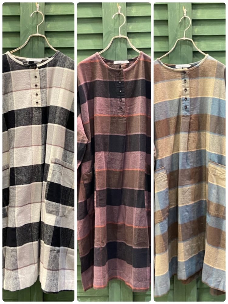 綿麻平織起毛ブロックチェックポケ付きヘンリーチュニック
